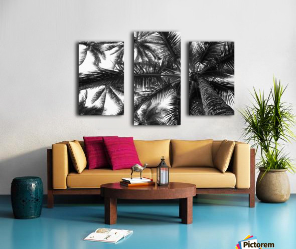 Low angle view of coconut palm trees in black and white; Honolulu, Oahu, Hawaii, United States of America Canvas print