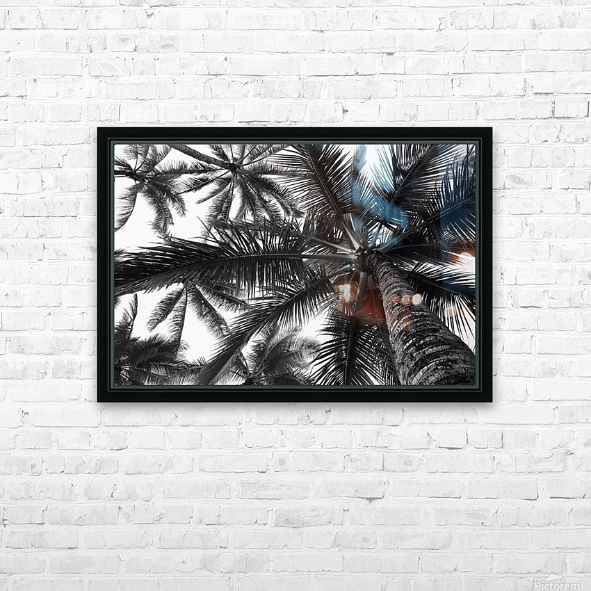 Low angle view of coconut palm trees in black and white; Honolulu, Oahu, Hawaii, United States of America Picture Frame Printing