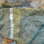 a stone resting near a river in Italy, the stone had the clear markings of age and a distinct white line marking its face, a mark of time?, a begining? perhaps an end?, or simply a milestone of when different materials met.