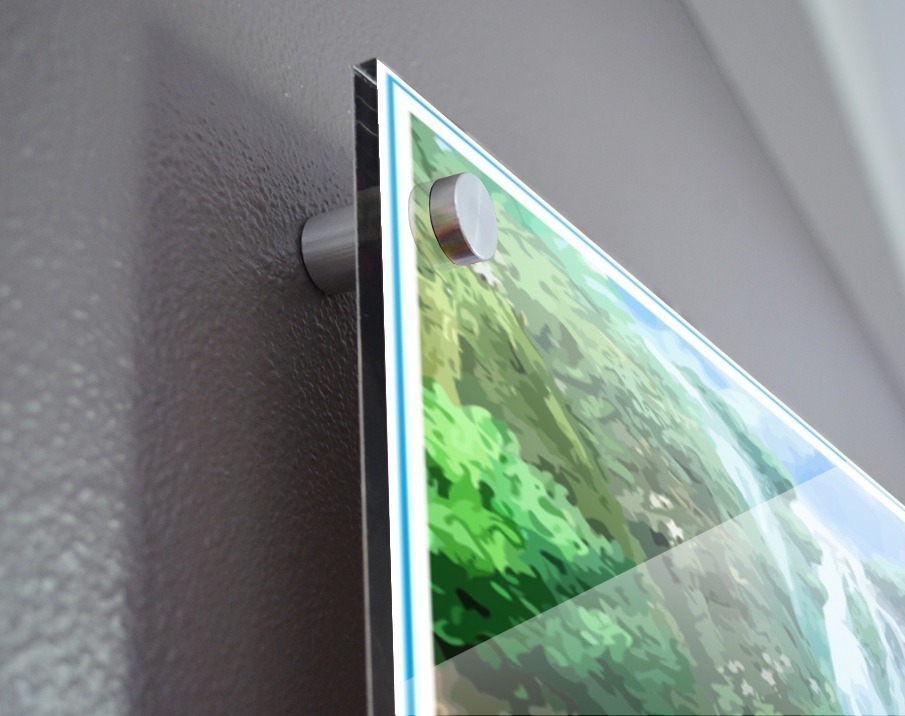 Printed to the edge - Ready to hang - provided with 4 premium polished aluminum stand off ( wall screws and mounting hardware provided )
