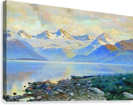 LARGE RUSIAN LAKE WITH MOUNTAINS IN THE BACK KONSTANTIN YAKOVLEVICH KRYZHITSKY  Canvas Print