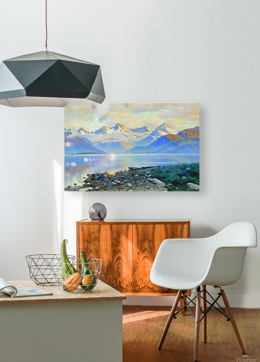 Get this artwork "Large Rusian lake with mountains in the back" in a framed print.