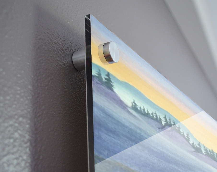 Printed to the edge - Ready to hang - provided with 4 premium polished aluminum stand off ( wall screws and mounting hardware provided )