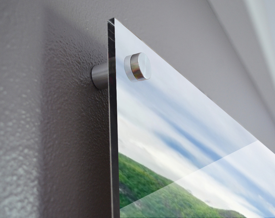Printed to the edge - Ready to hang - provided with 4 premium polished aluminum stand off ( wall screws and mounting hardware provided )