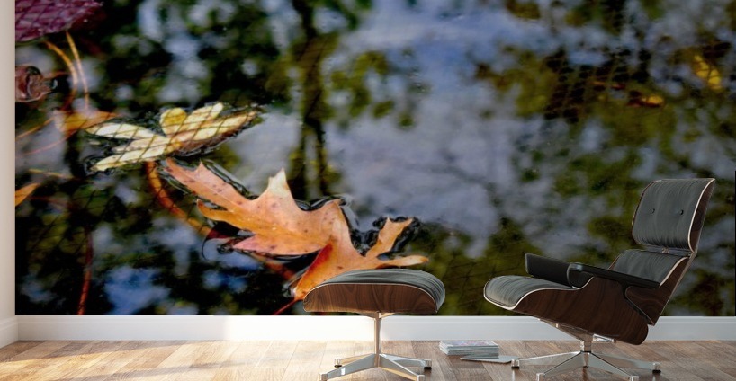 koi pond with leaves