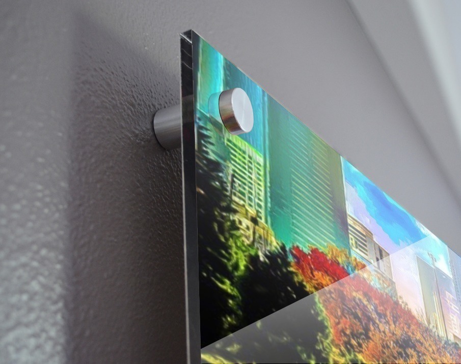 Printed to the edge - Ready to hang - provided with 4 premium polished aluminum stand off ( wall screws and mounting hardware provided )