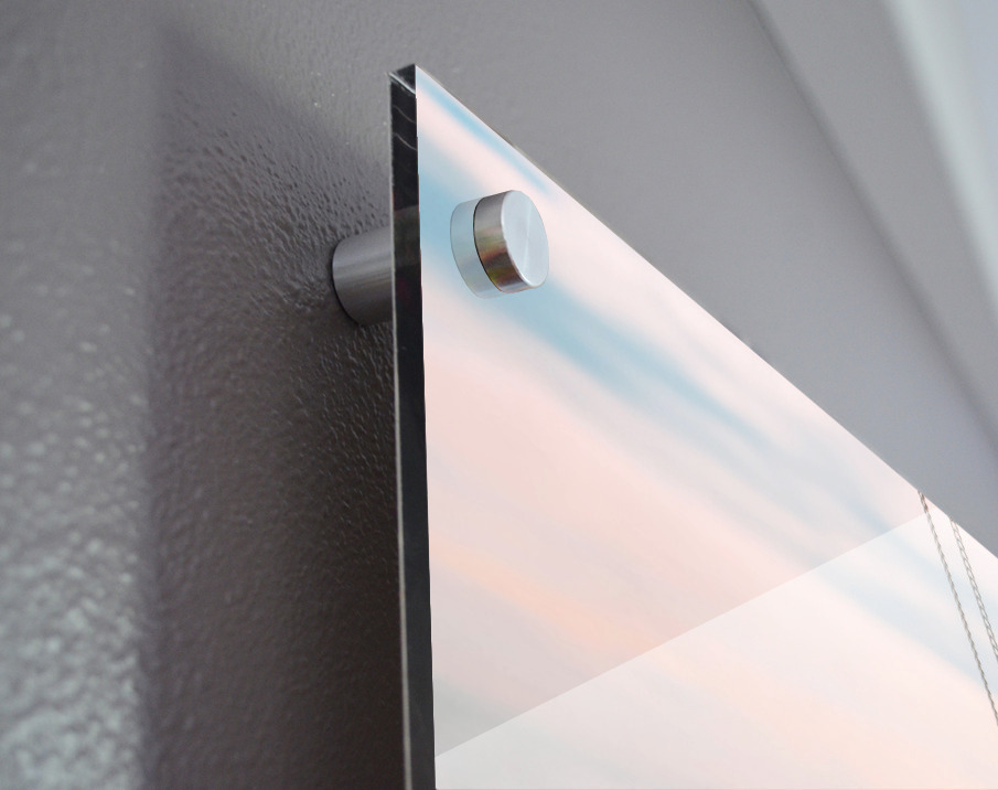 Printed to the edge - Ready to hang - provided with 4 premium polished aluminum stand off ( wall screws and mounting hardware provided )