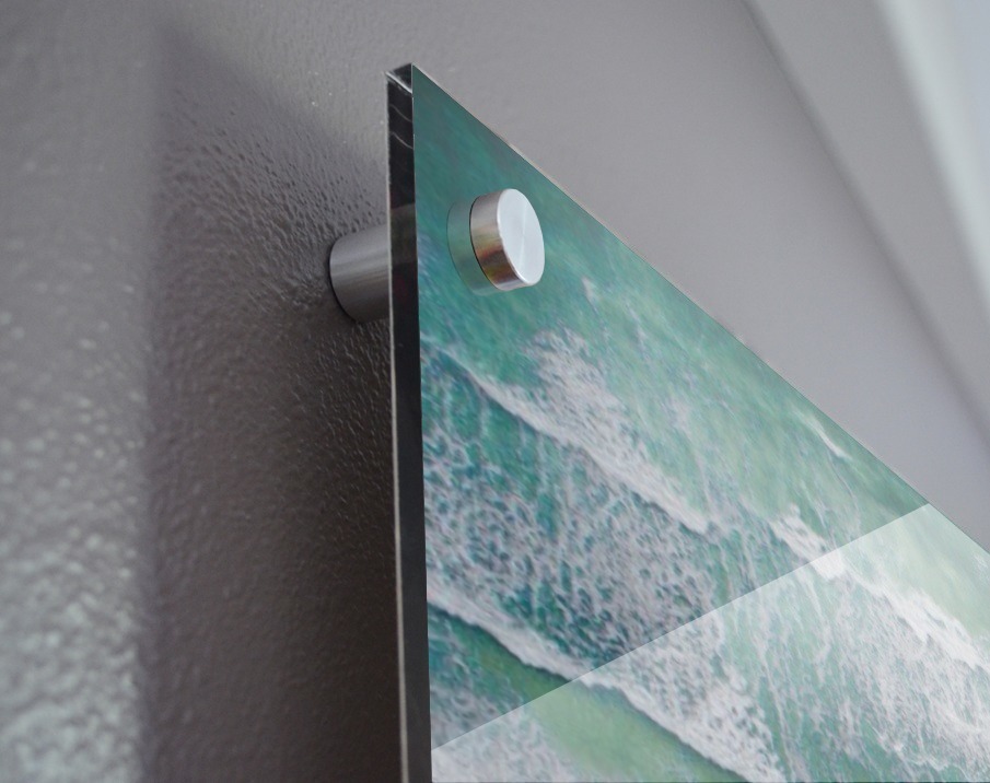 Printed to the edge - Ready to hang - provided with 4 premium polished aluminum stand off ( wall screws and mounting hardware provided )