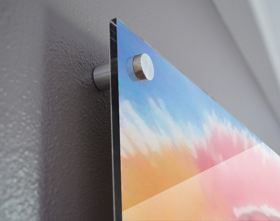 Printed to the edge - Ready to hang - provided with 4 premium polished aluminum stand off ( wall screws and mounting hardware provided )