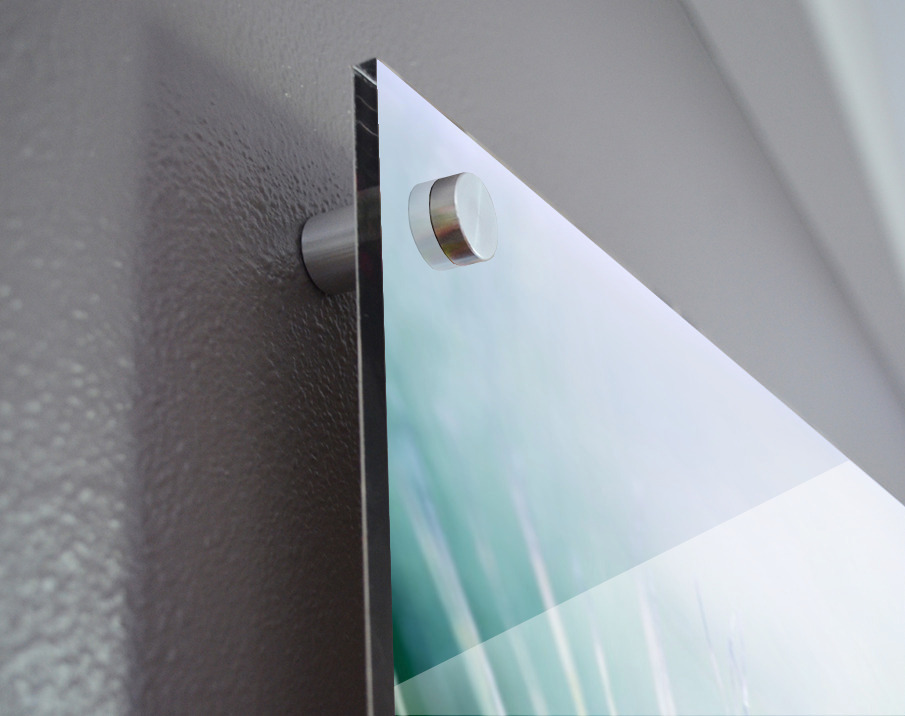 Printed to the edge - Ready to hang - provided with 4 premium polished aluminum stand off ( wall screws and mounting hardware provided )