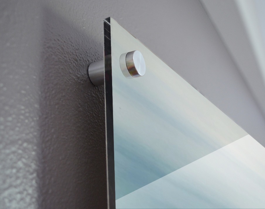 Printed to the edge - Ready to hang - provided with 4 premium polished aluminum stand off ( wall screws and mounting hardware provided )