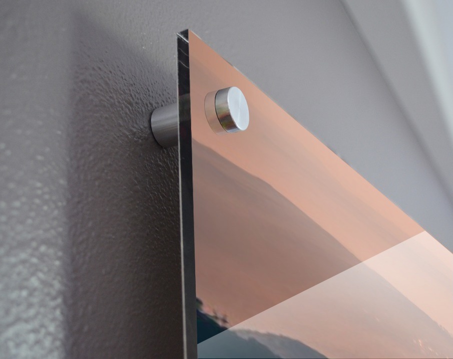 Printed to the edge - Ready to hang - provided with 4 premium polished aluminum stand off ( wall screws and mounting hardware provided )