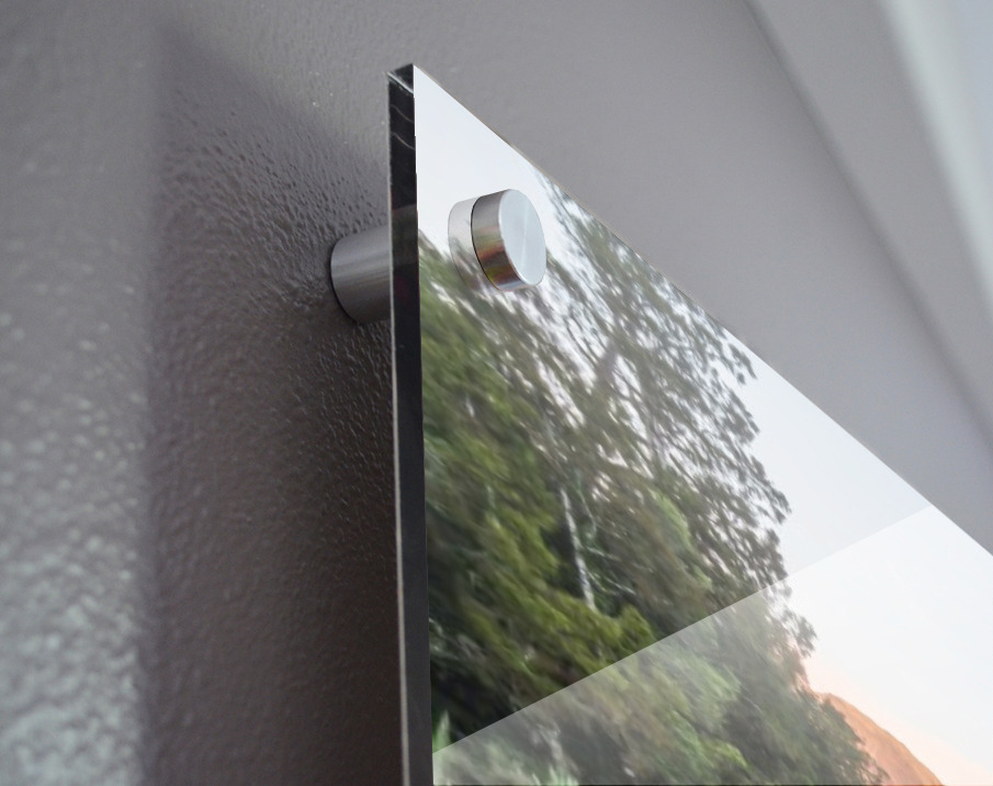 Printed to the edge - Ready to hang - provided with 4 premium polished aluminum stand off ( wall screws and mounting hardware provided )