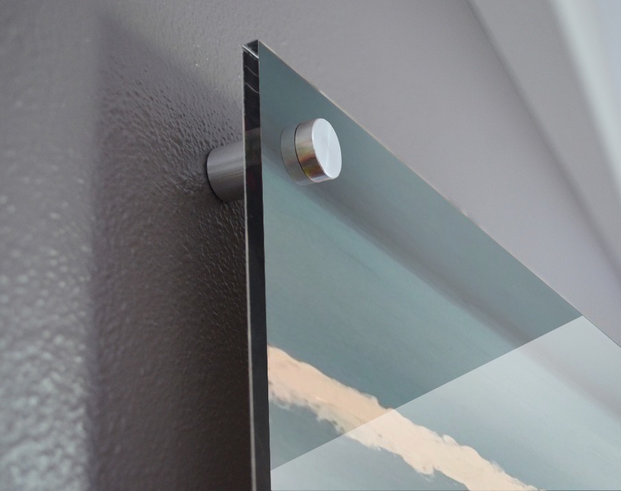 Printed to the edge - Ready to hang - provided with 4 premium polished aluminum stand off ( wall screws and mounting hardware provided )