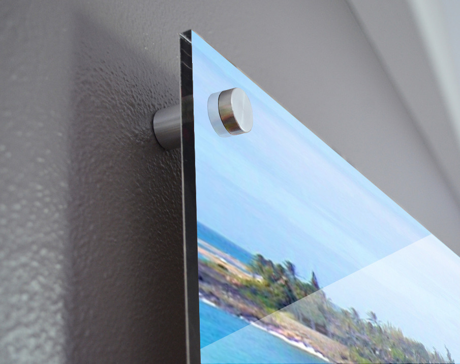 Printed to the edge - Ready to hang - provided with 4 premium polished aluminum stand off ( wall screws and mounting hardware provided )