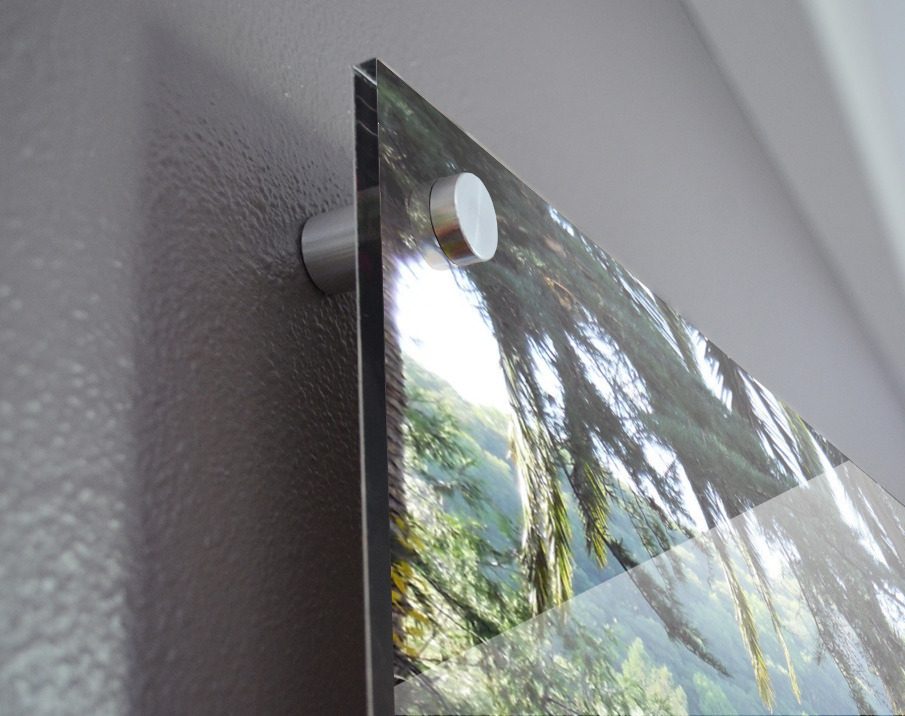 Printed to the edge - Ready to hang - provided with 4 premium polished aluminum stand off ( wall screws and mounting hardware provided )