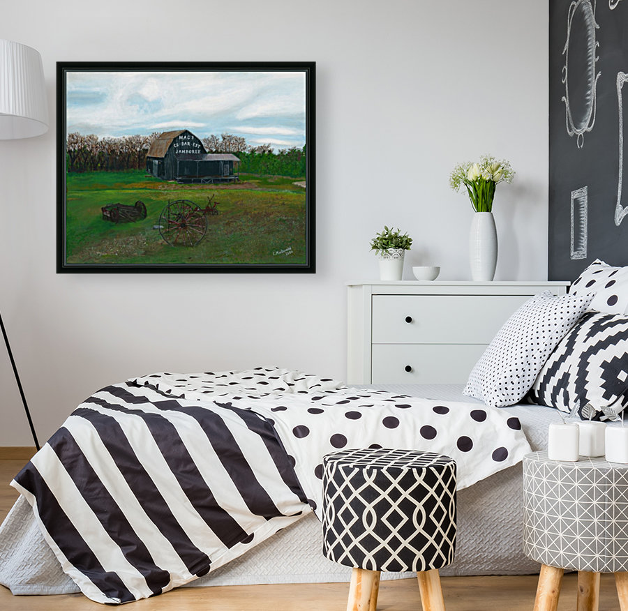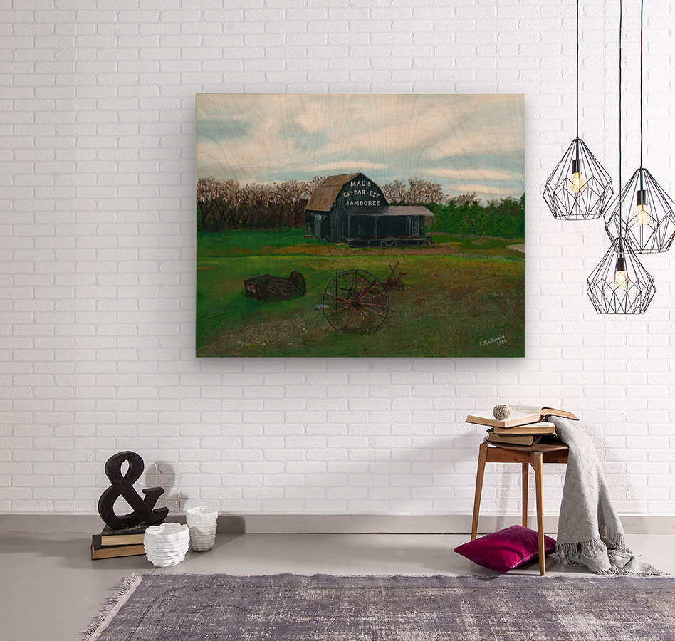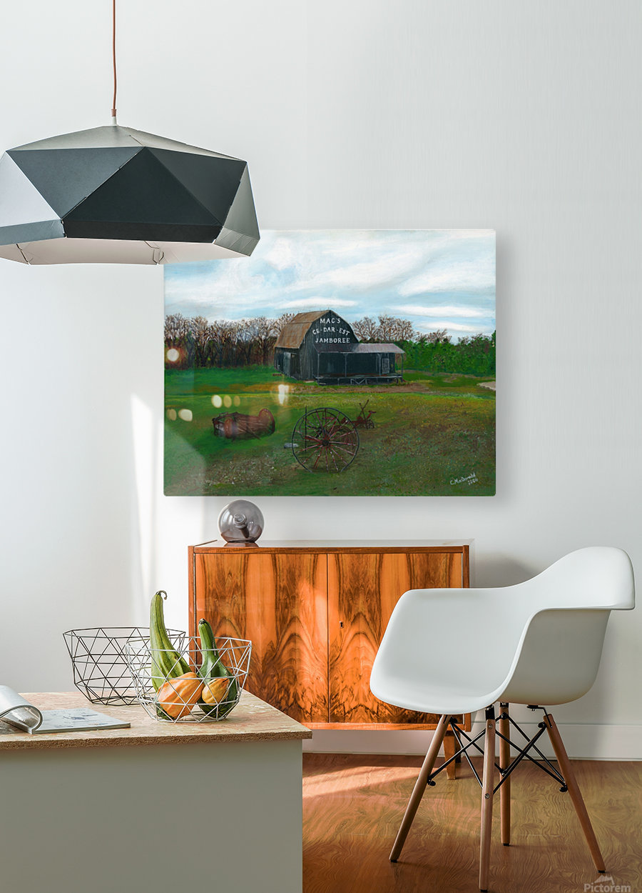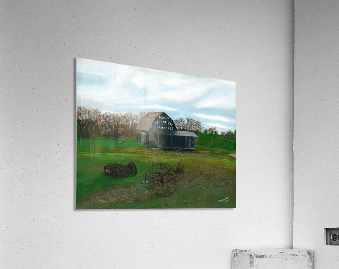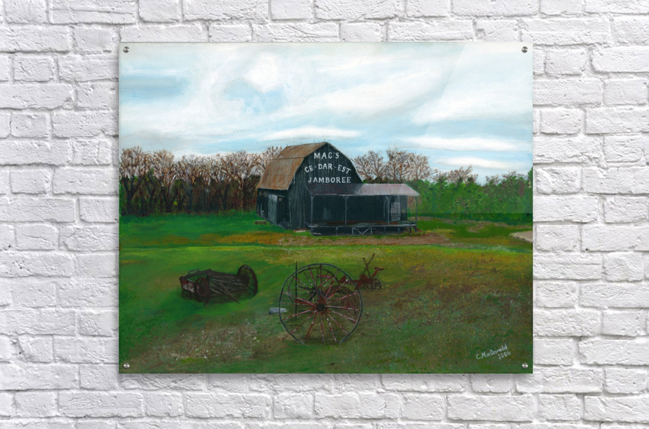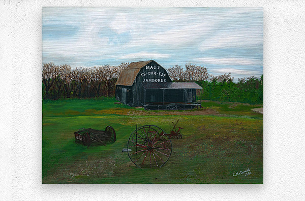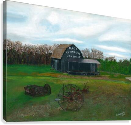 Print on canvas Macs Ce-dar-est Jamboree barn of original acrylic painting by Casey MacDonald in 2006. An excellent gift for those that have fond mem...[+]