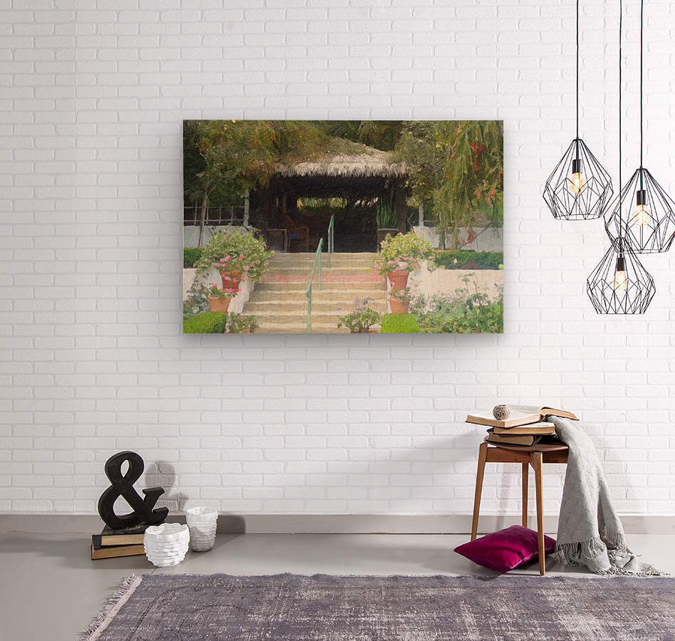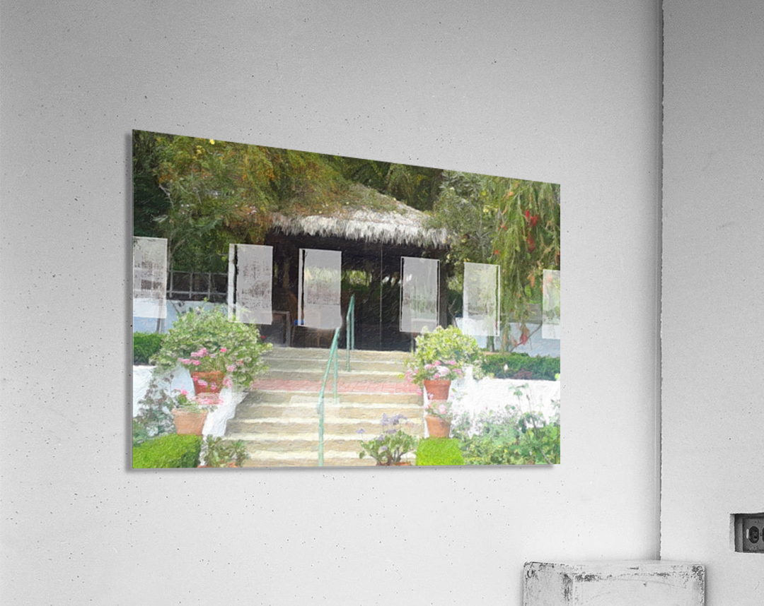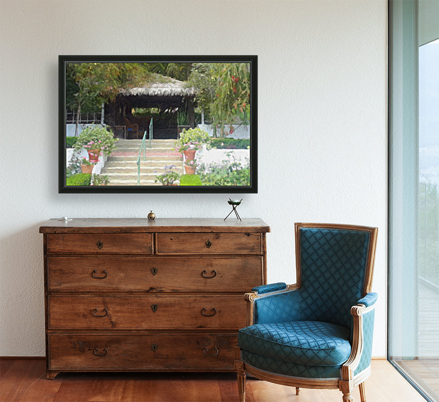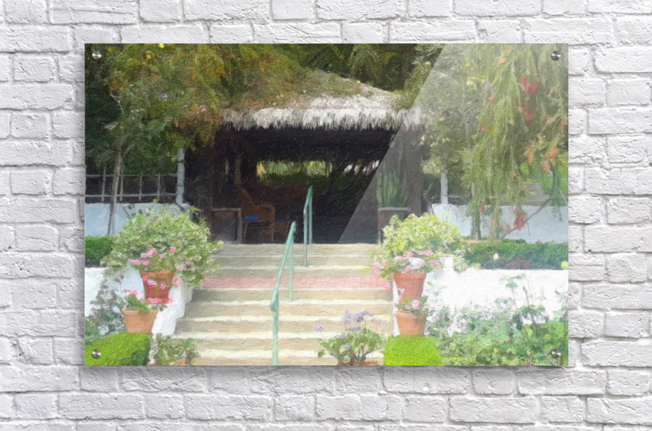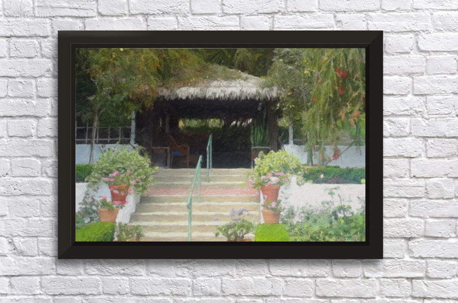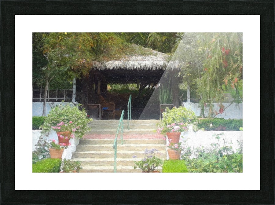 Get this artwork "Thatch Roof Gazebo Rancho Los Alamitos Gardens" in a framed print.