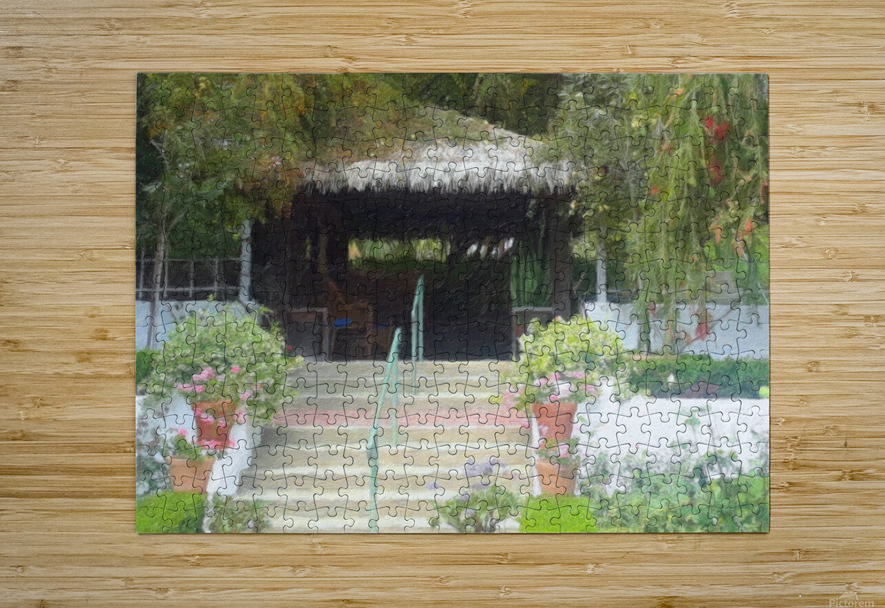 Thatch Roof Gazebo Rancho Los Alamitos Gardens CanvasBloom Puzzle printing
