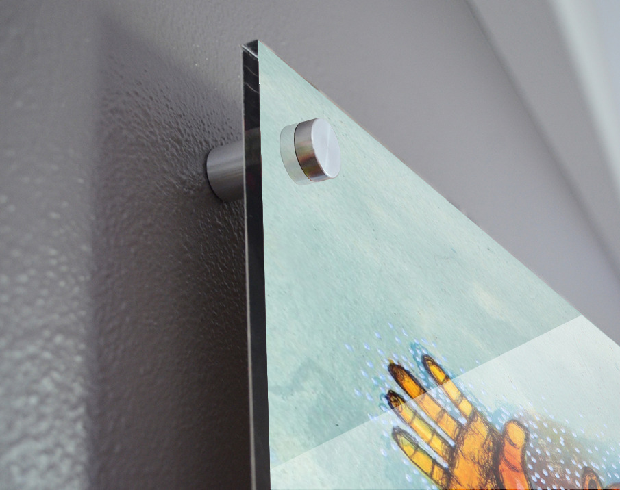 Printed to the edge - Ready to hang - provided with 4 premium polished aluminum stand off ( wall screws and mounting hardware provided )