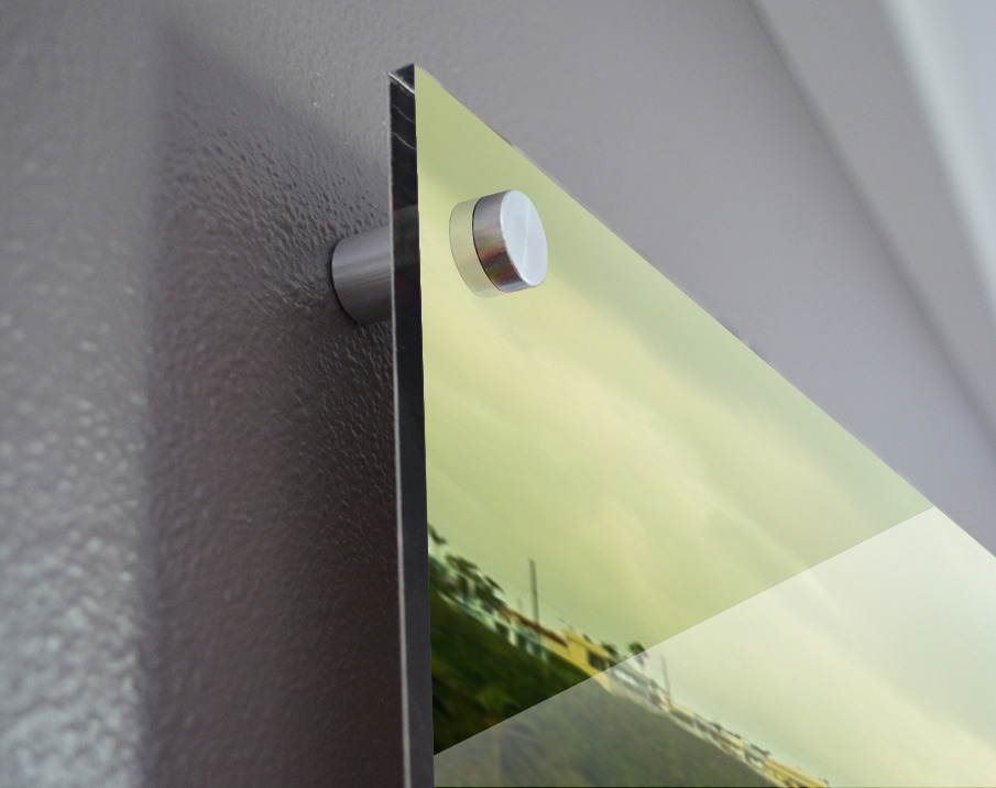 Printed to the edge - Ready to hang - provided with 4 premium polished aluminum stand off ( wall screws and mounting hardware provided )