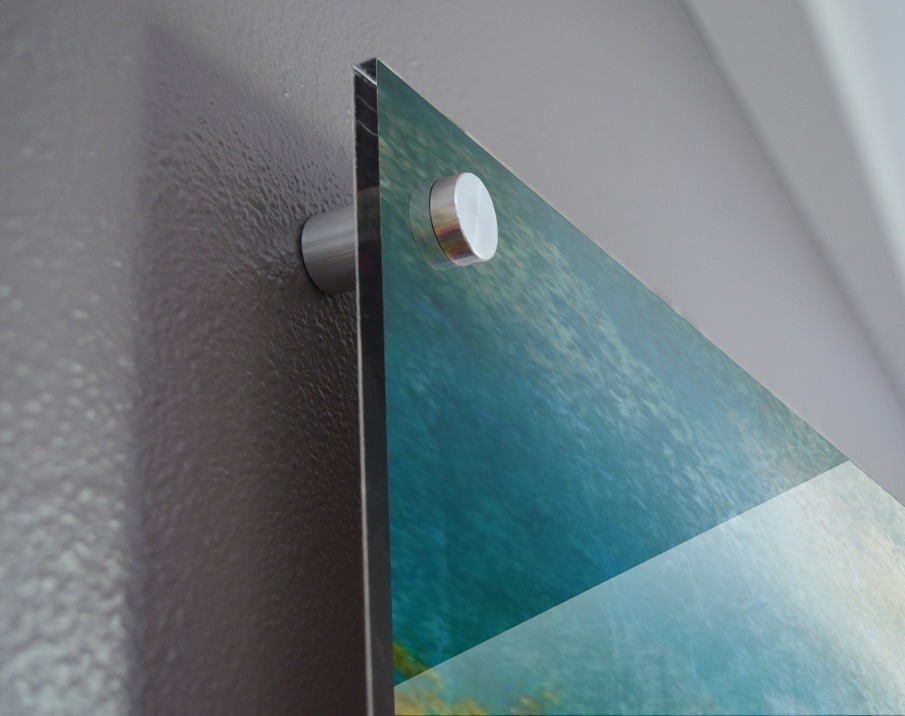 Printed to the edge - Ready to hang - provided with 4 premium polished aluminum stand off ( wall screws and mounting hardware provided )