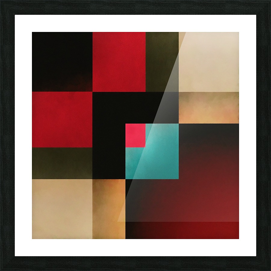Bold, rich colors come together in geometric square-based patterns, with a small patch of shocking fuchsia on a larger patch of blue in this vivid digital abstract art from Jon Woodhams.