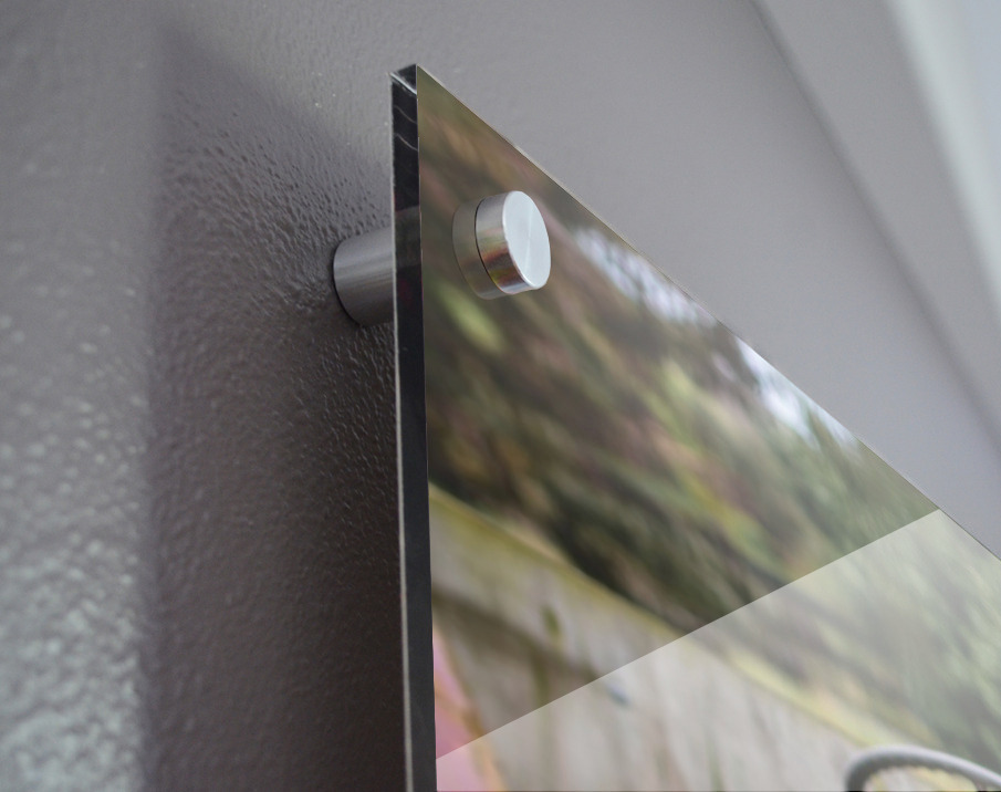 Printed to the edge - Ready to hang - provided with 4 premium polished aluminum stand off ( wall screws and mounting hardware provided )