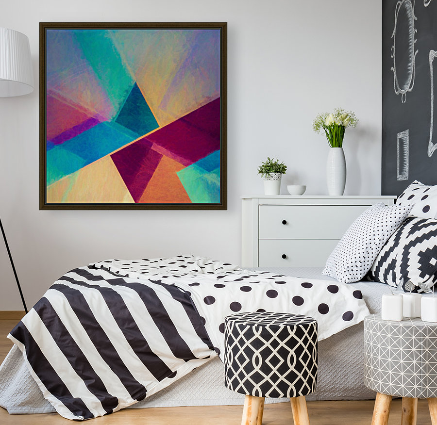 Dramatically lit, richly colored pastel and watercolor-inspired tones and shades come together obliquely in this angled abstract digital art by Jon Woodhams. Try it printed on canvas or framed.
