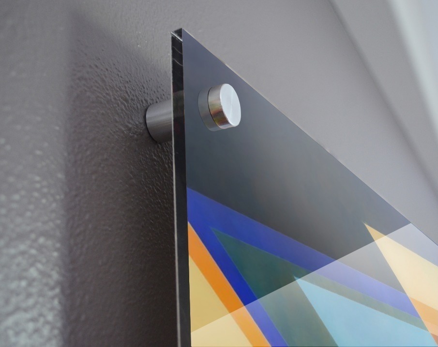 Printed to the edge - Ready to hang - provided with 4 premium polished aluminum stand off ( wall screws and mounting hardware provided )