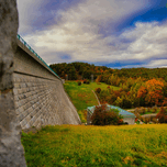 Captured during a moody autumn afternoon in Massachusetts, Edge of the Reservoir explores the meeting point between human craftsmanship and nature's seasonal calm. The dam's geometric strength contrasts against rolling hills and turbulent skies, embodying balance, endurance, and solitude. This photograph captures the quiet power of infrastructure surrounded by nature - a visual reflection on control, flow, and time.