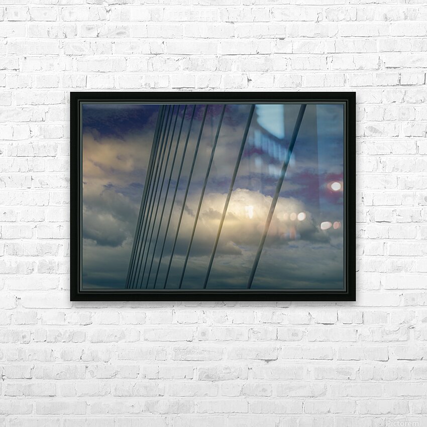 The cloud views looking through the support wires of the Talmadge Memorial Bridge presented a unique opportunity for a modern abstract over Savannah Georgia's Savannah River near dusk. Visible from the downtown historic district of Savannah, the Talmadge Memorial Bridge fills the horizon over to Hutchinson Island looking up river. This bridge was a replacement for another bridge which lacked the height to allow the newer vessels to pass under the bridge. The new Talmadge Memorial bridge cable-stayed replacement, completed in March 1991, is better able to accommodate tall maritime traffic. Remnants of the old Ogeechee-Savannah Canal can be seen on the Georgia side, under the bridge. This project took many years to complete in the 1800’s, but was only in use for short period of time. During that time, barges were polled or pulled to various plantations along the canal. The Savannah International Trade and Convention Center and the Westin Savannah Harbor Resort are located on the island with a regular ferry that crosses to the historic downtown district of Savannah.