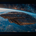 A BORSHAN SHIP ORBITING THE PLANET HASKIAN ASTONISHING AI CONCEPT SCI-FI ART BY XZENDOR7