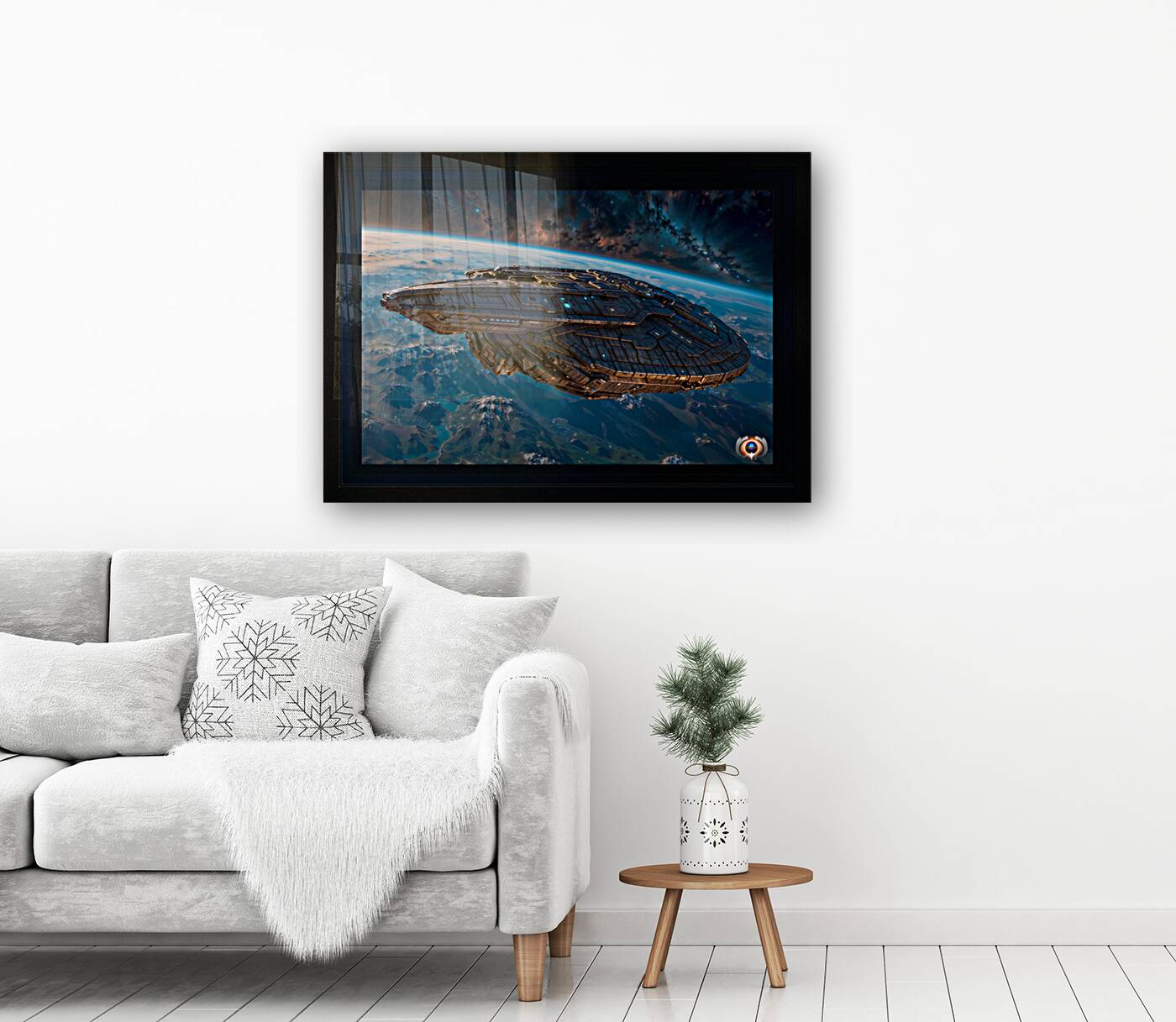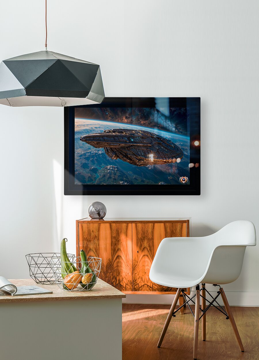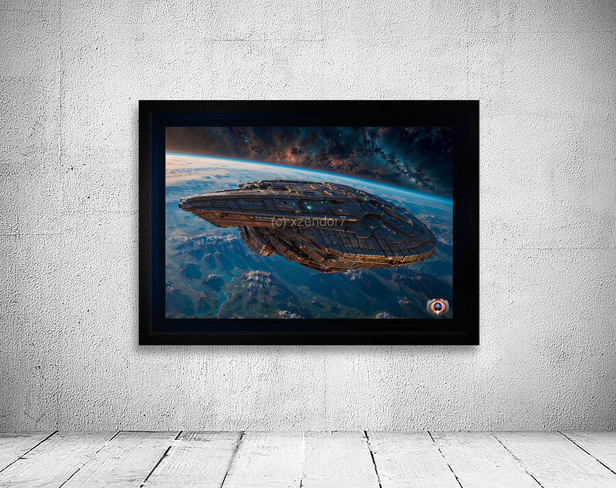 A Borshan Ship Orbiting The Planet Haskian Astonishing AI Concept Sci-Fi Art by Xzendor7 Wall Decor Frame