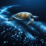 This piece Viaje Luminoso captures the majestic serenity of a sea turtle gliding across a fascinating ocean floor. The ethereal sparkles around the creature evoke an underwater universe creating a dreamlike atmosphere that enhances any space. This work ideal for those looking for a touch of mystery and natural elegance promises to be the focus of all eyes in its decorative environment.---> Note: This work is a human creation assisted by AI registered as Creative Commons in Safe Creative: https://n9.cl/2403097286681