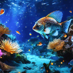 Coral Domain immerses us in the vitality of the seabed where a fish with showy scales seems to claim its territory among corals and anemones. The scene illuminated by floating particles that capture the light creates an almost magical effect as if the entire ocean was pulsating to the rhythm of life. This image with its detail and color would be the center of any room inviting contemplation and wonder. ---> Note: This work is a human creation assisted by AI registered as Creative Commons in Safe Creative: https://n9.cl/2403097286865