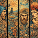 FOUR PANEL AI TRIBUTE TO THE STYLE OF VINCENT VAN GOGH.