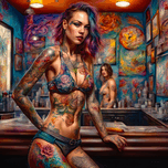 BEAUTIFUL YOUNG WOMAN SHOWS HER TATTOOS