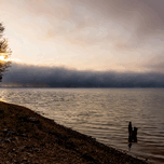 A mystical morning scene with the remains of a dead tree stump, also called snag, sticking up above the water near the shoreline during a foggy sunrise at Table Rock Lake, in Blue Eye, Missouri, United States. This is near Branson, MO. The sun can be seen through some tree branches of some trees. I was actually planning on sleeping in on this morning while camping. My body just has a habit of getting up early. I finally gave up and got up to walk to the shower house. As I was walking, I noticed the fog over the water. Needless to say, I got my camera and took lots of photos. This is at old 86 Campground during the spring season. This photo was taken by Jennifer White with Timeless Moments Photography. All images are copyrighted © Timeless Moments Photography/Jennifer White. All rights reserved. Please note the watermark does not print on ordered products.