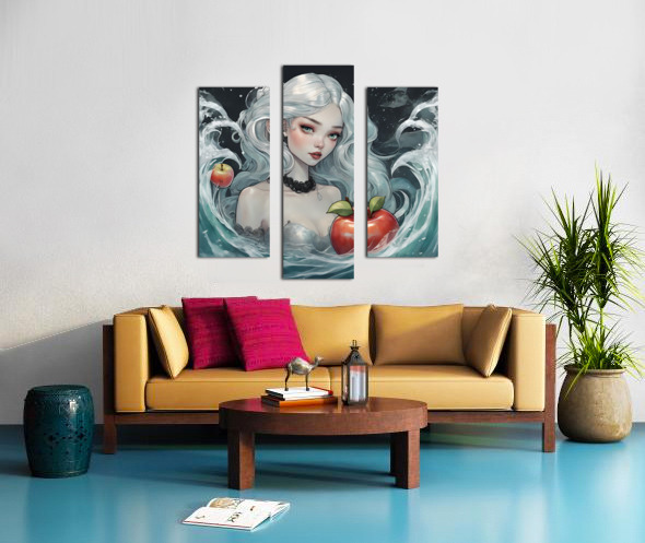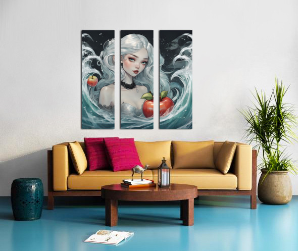 La Mermaid painting with an apple next to it to play withdesigns. walls. Reception. Frames. Decorations