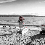 16:9 Version. A Life Guard on the beach, Black and White and Red