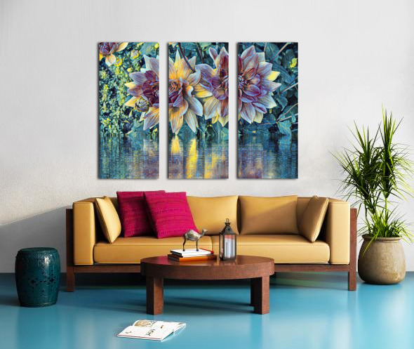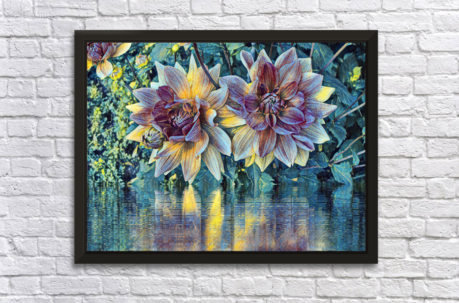 Arte 147 Dahlias Flowers impressionist-paint-style HD Sublimation Metal print with Decorating Float Frame (BOX)