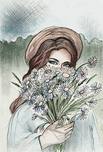 ARTXCL 174 WOMAN FLOWERS HIDDEN FACE ILLUSTRATION