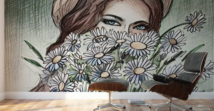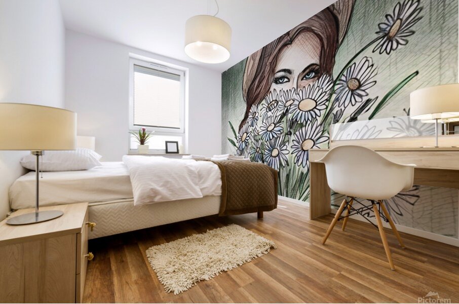 ArtXcl 174 woman flowers hidden face illustration  Wood print