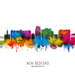 Elegant Watercolor Skyline of New Bedford, a city in Bristol County, Massachusetts, United States