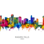 Elegant Watercolor Skyline of Niagara Falls, Ontario, a Canadian city at the famous waterfalls of the same name