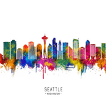 Elegant Watercolor Skyline of Seattle, largest city of Washington State, U.S.