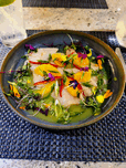 This beautiful dish is served at Tidal, a restaurant at Paradise Point Resort & Spa. A vibrant plate of Hamachi crudo, meticulously layered with citru...[+]
