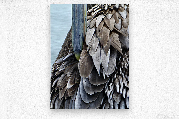 Brown Pelican ~ closeup of feathers and beak Anna Maria Island HD Sublimation Metal print with Decorating Float Frame (BOX)