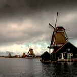 Overhead storms especially in winter can mean troubles in the Netherlands. This photo was taken in January. Flood conditions can mean problems for the lowland country near Amsterdam, but these clouds moved out and became less threatening as the day wore on. De Zaanse Schans in Zaandam, near Amsterdam is home to 8 windmills with great names such as The Cat (de kat), The Spotted Hen (de bonte hen) and The Cloverleaf (het klaverblad). The mills were used for varying purposes from sawmills to oil mills to mustard mills. We manages to spend hours here viewing a bakery museum and a museum of Dutch clocks, all in a setting of old historic buildings and barns. When editing I noticed a cat in the photo. Can you find her?
